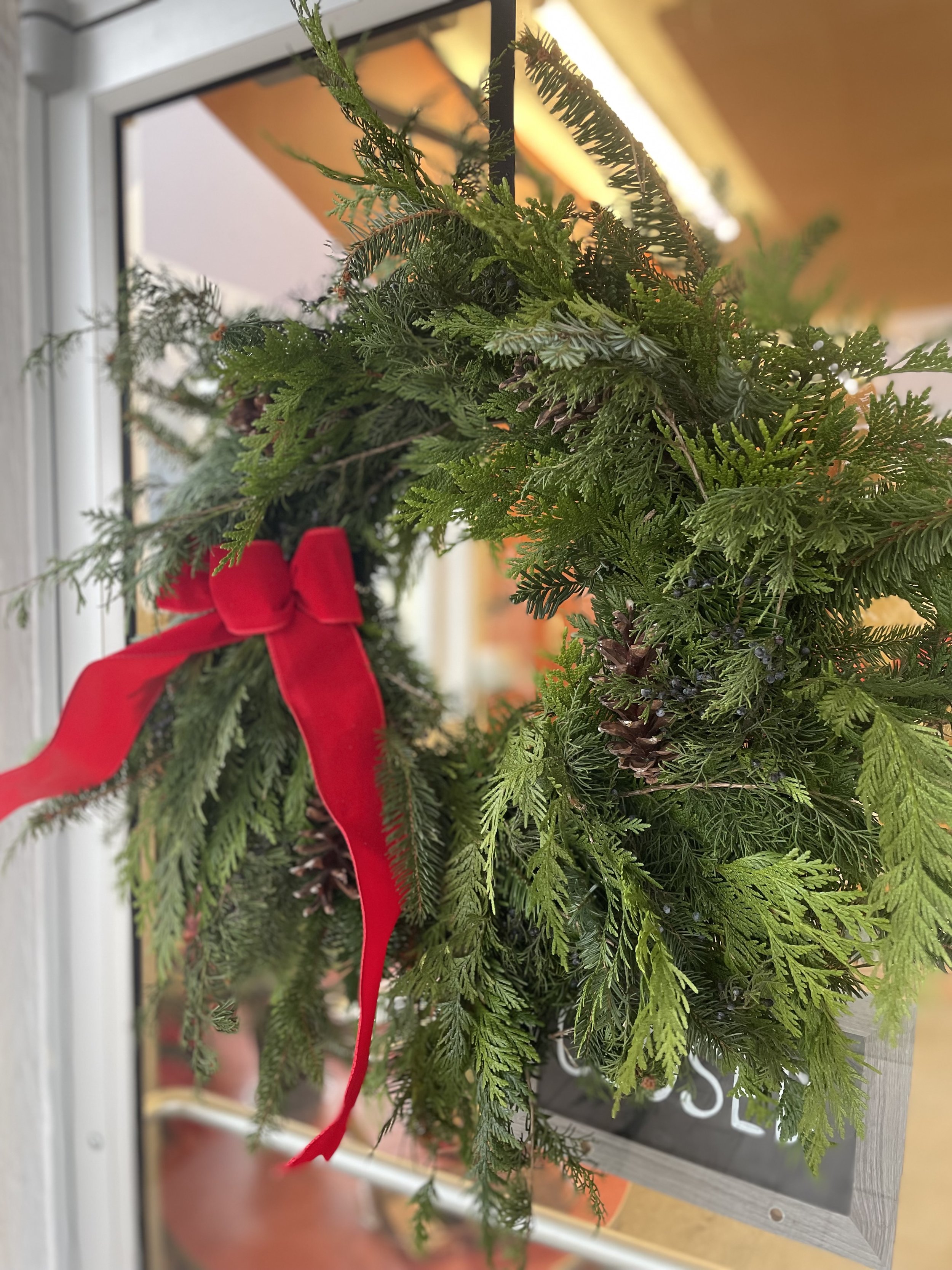 At our workshops we guide you through the process of selecting greenery and natural decorations for your evergreen wreath or pot. Enjoy holiday refreshments while you create.